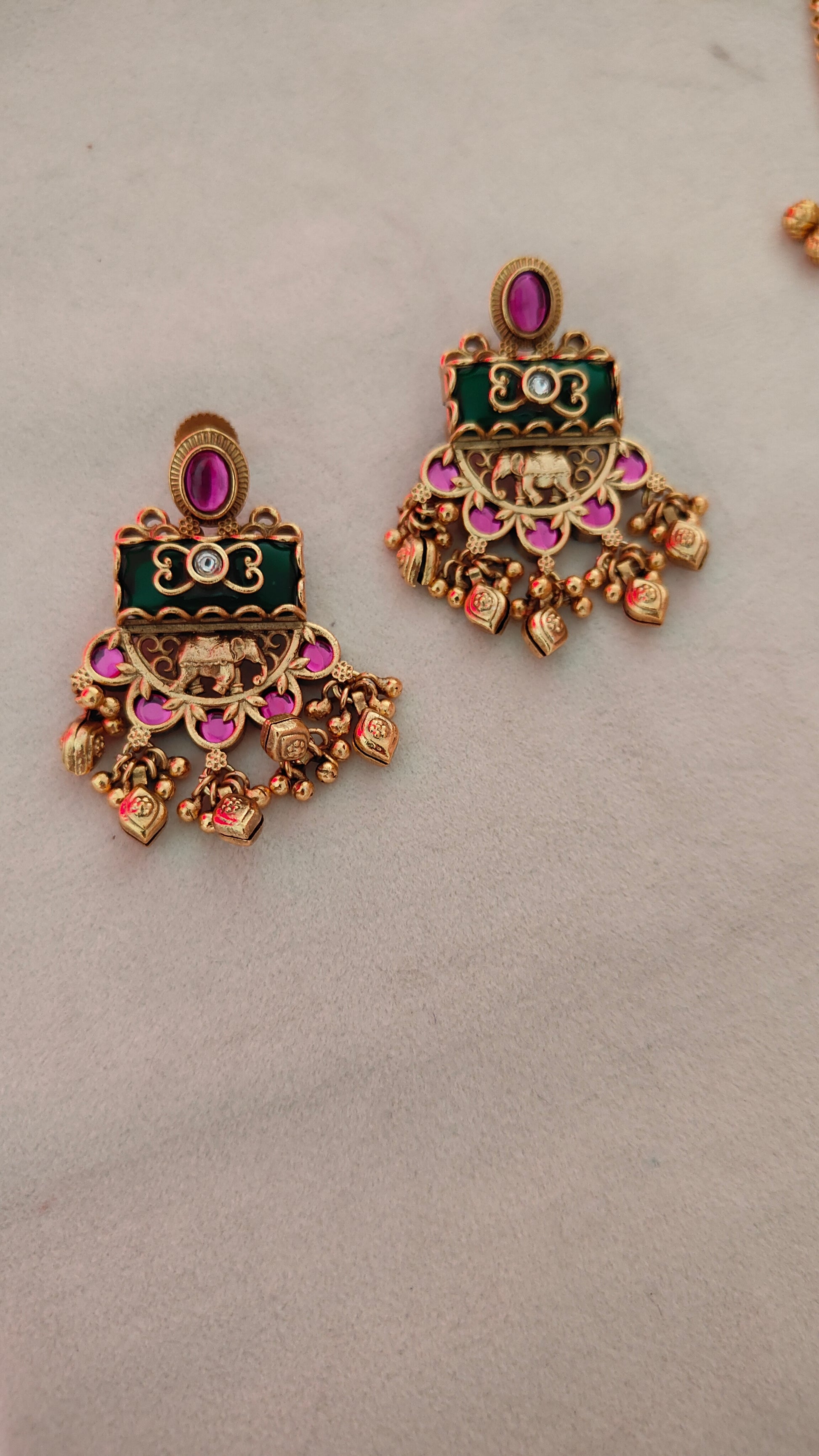 Heritage Long Pink Onyx Pendent Set