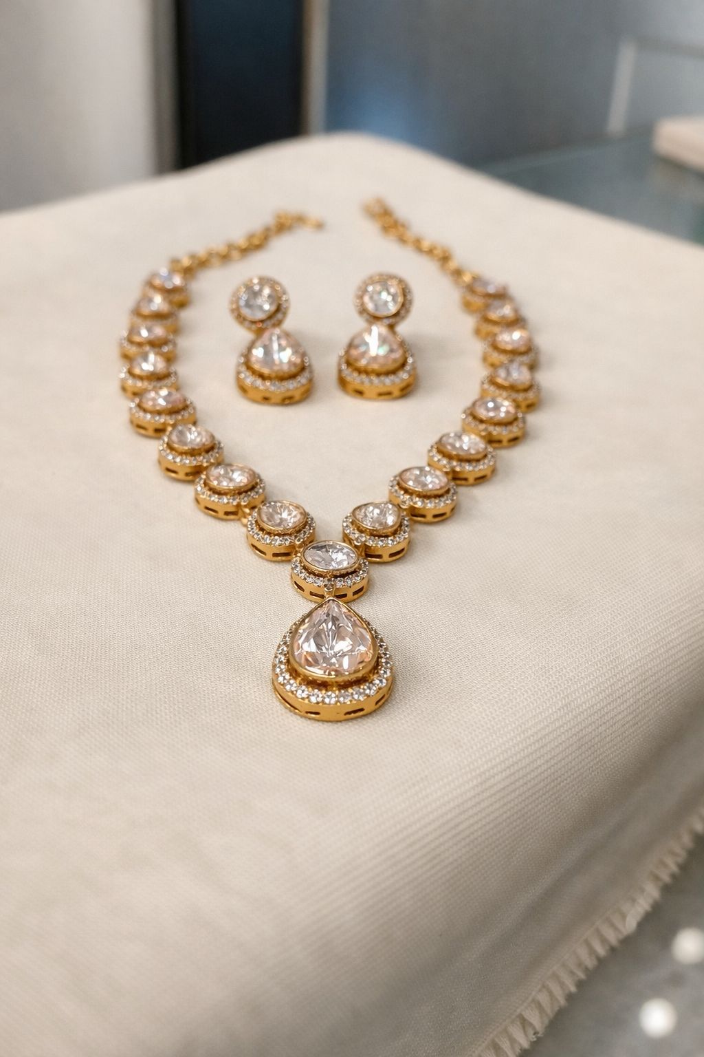 Single Drop Hanging uncut polki look Moissanite necklace and a pair of earrings