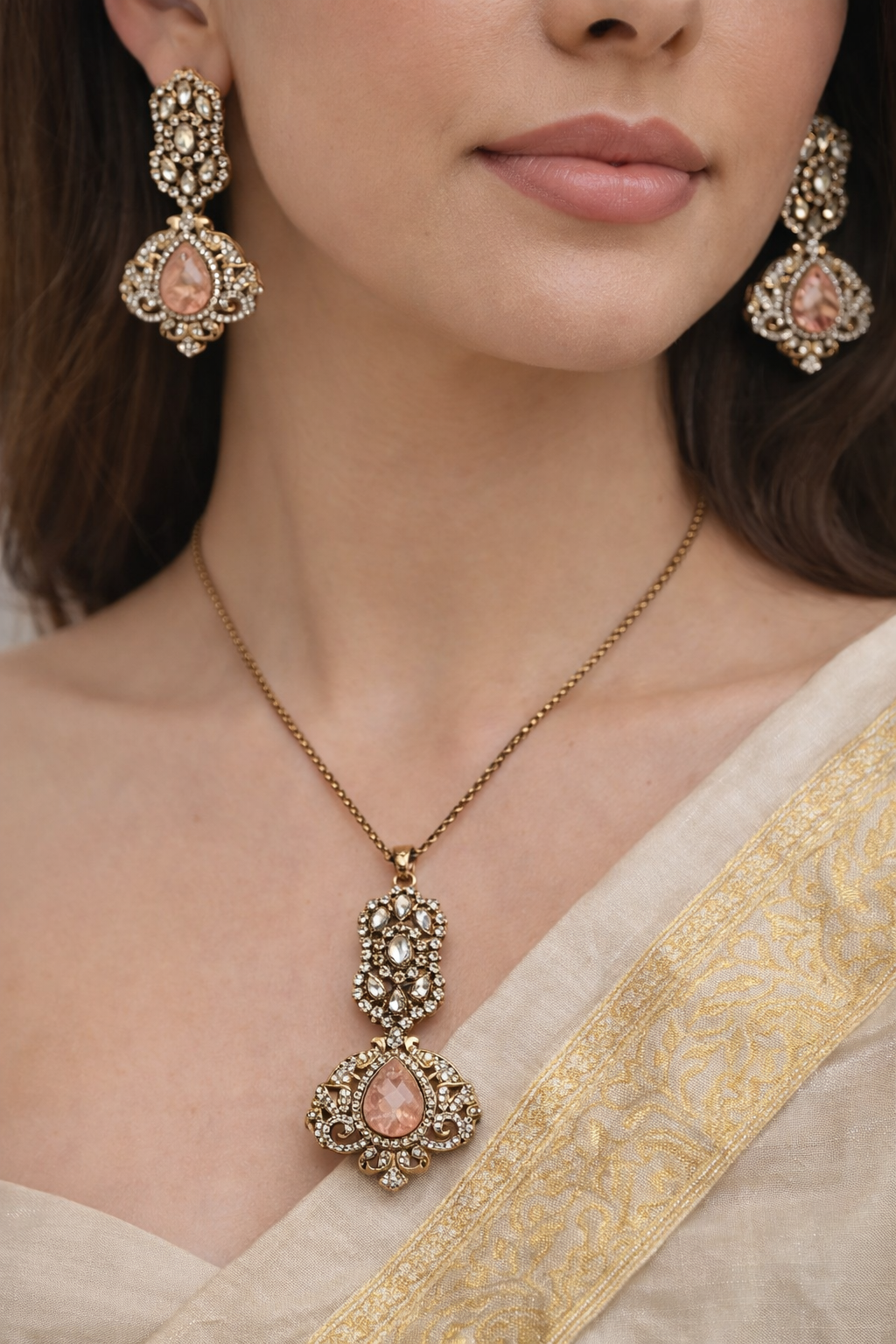 Victorian Pink Stone Pendent Set